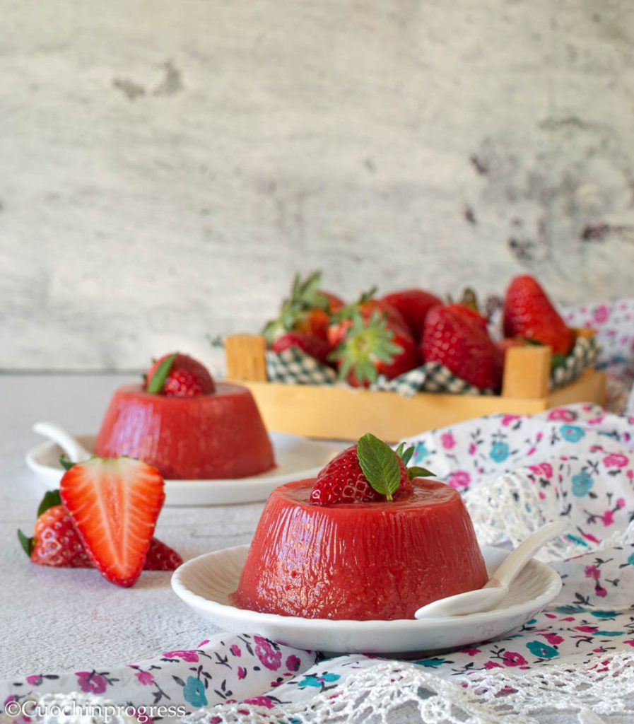 As you can see, the recipe is really simple and only requires nice ripe, fragrant, and juicy strawberries to give the dessert all their natural goodness. I prefer not to overdo the sugar in order to highlight the delicate flavor of the berries even more, but you can of course adjust the sugar slightly to suit your taste. Do not change the percentage of starch, however, so that the gelo remains well set without becoming too dense and, therefore, less appealing.
