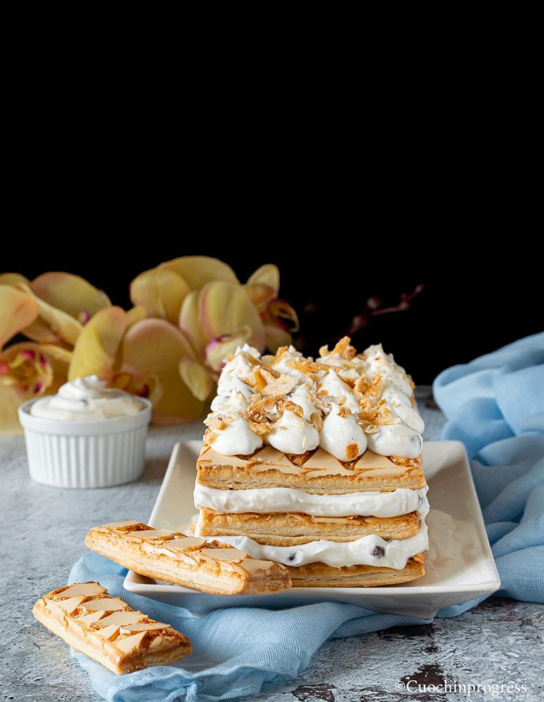 Preparing this dessert is really simple and fast. The only step on the stove, which is very quick, is to properly thicken the milk cream, which will then need to rest in the refrigerator for a few hours to cool well and be ready to use. Assembling the dessert does not require particular care: use good puff pastry cookies (there are excellent ones in all supermarkets) and have fun decorating as you like. A small tip: assemble the dessert not too long before serving because, although the puff pastries are caramelized, they tend to lose their crispness when in contact with the cream. It would be a shame not to enjoy, along with the creaminess of the dessert, the typical “crunch” of a good puff pastry…