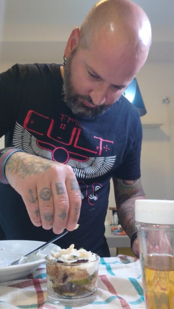 Place a generous spoonful of ricotta and agave cream at the bottom, then lay down some fig slices (or wedges).
