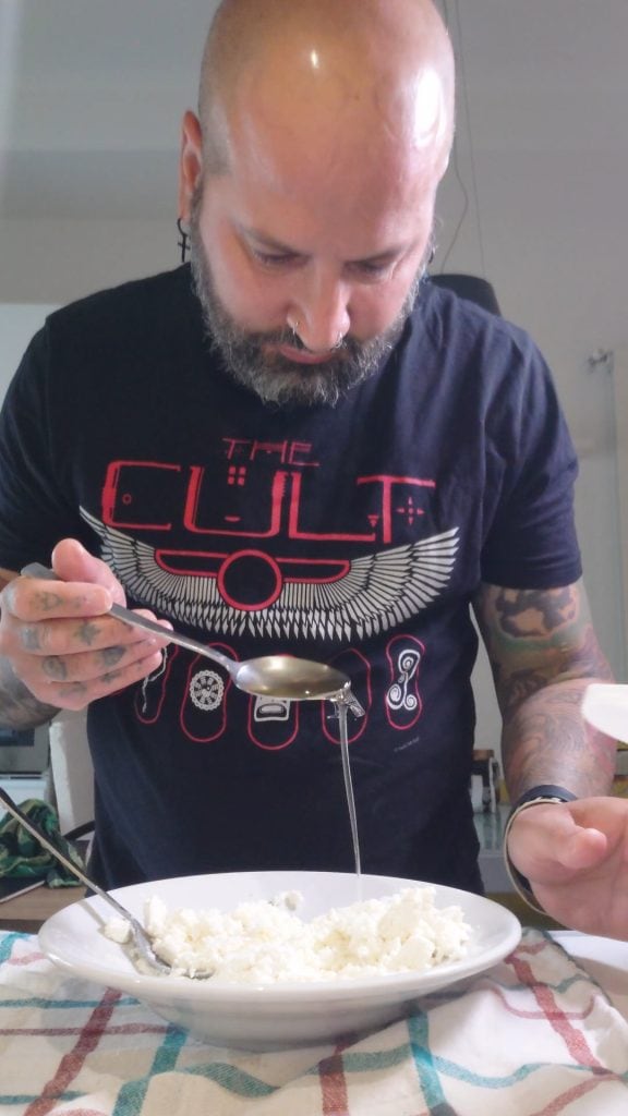 If the ricotta you use is very compact, you can soften it slightly with a fork before adding the agave syrup.