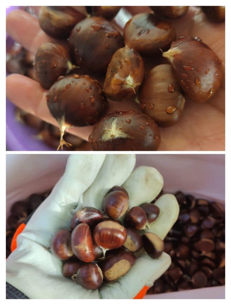After washing and drying them, cut them on one side to prevent them from swelling and bursting during cooking, which could not only excessively dirty but also harm us. This step should be done regardless of the method used for making roasted chestnuts.
