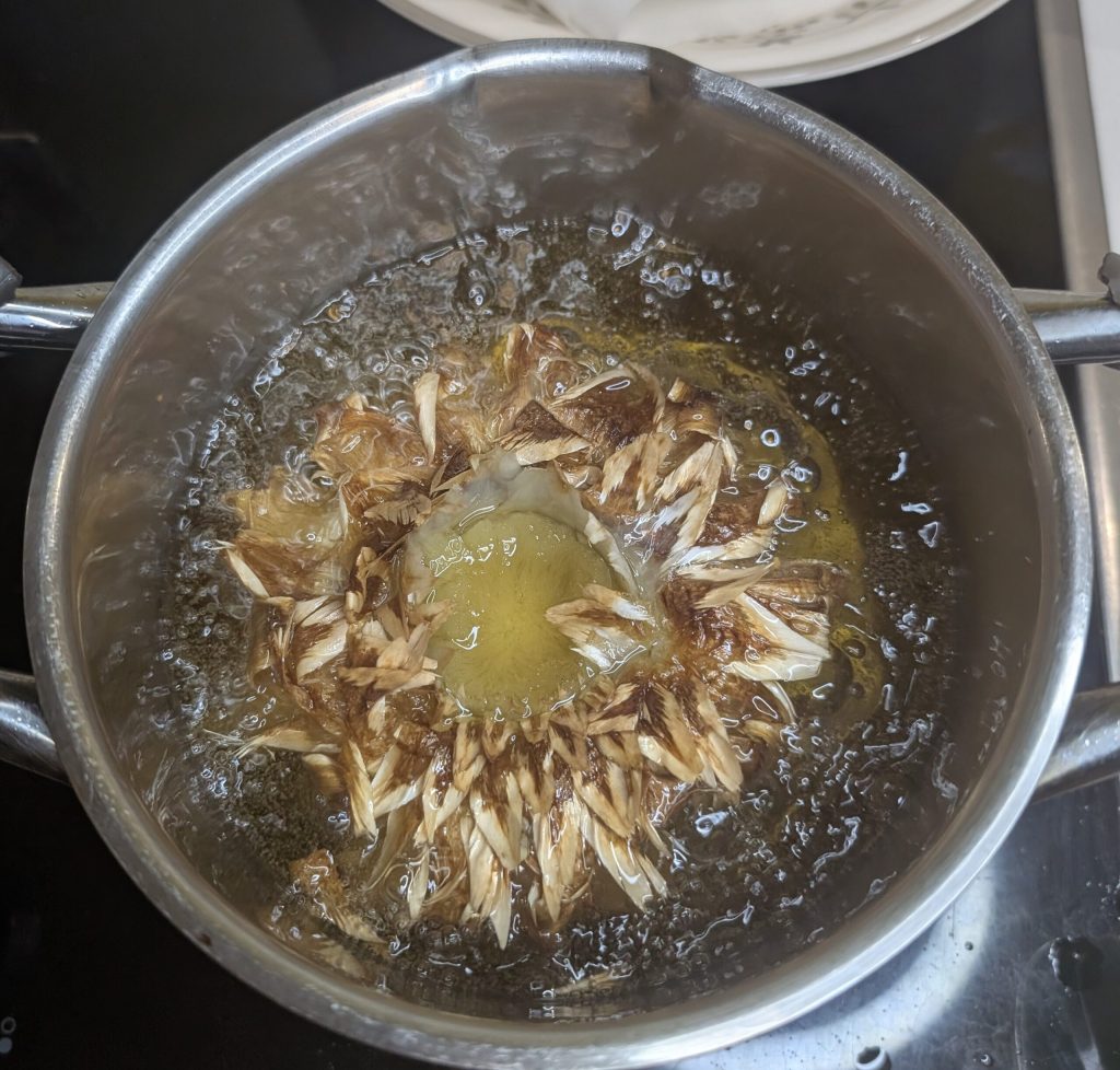 I do not recommend frying artichokes alla giudia only once. The double frying is the secret to achieving the right texture: the first at a lower temperature cooks the inside, the second at a higher temperature makes them crispy.
