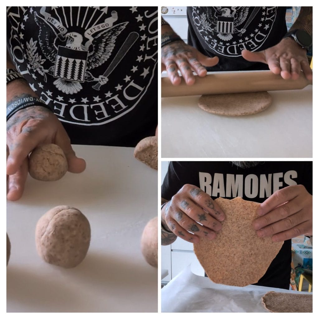 Let’s take our dough ball and divide it into 6 equal portions. With the help of our hands, form balls with each portion and place them on the floured work surface. At this point, roll out each ball with a rolling pin to obtain a disc about 1/8 inch thick. If the dough tends to stick, we can add a pinch of flour to the work surface or hands.