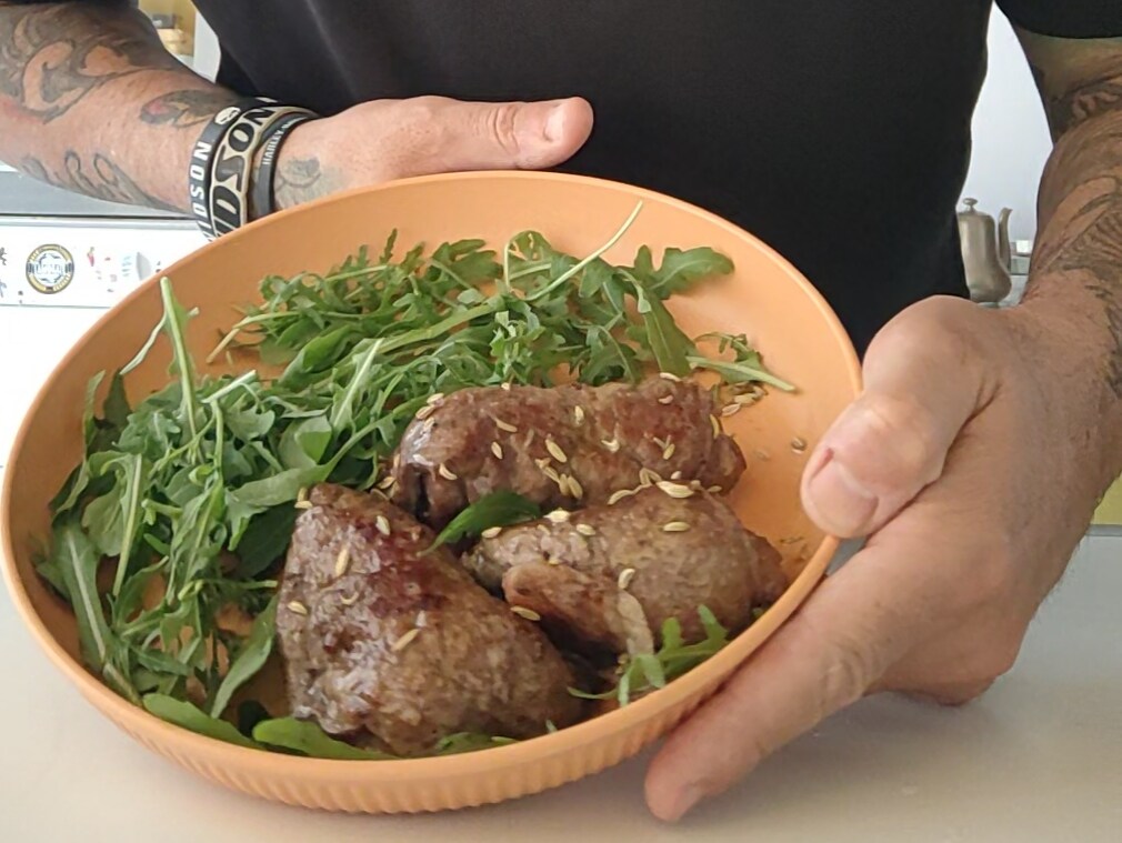 I plated and served the Liver alla Lodigiana with some undressed arugula and a few fennel seeds to decorate each roll.