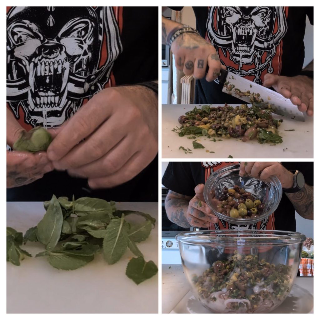 Now it’s time to create the chopped spices and olives that will give an explosive taste to our baked squid!