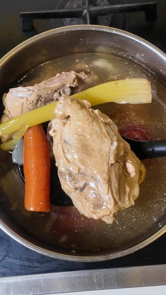 For an authentic and enveloping flavor, prepare a simple chicken broth with celery, carrot, and onion, just like your mother did.