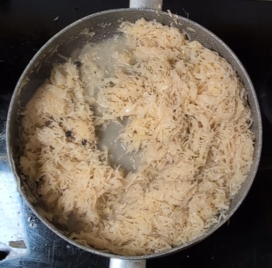 At this point, pour in the well-drained sauerkraut and fennel seeds, stirring to flavor.
