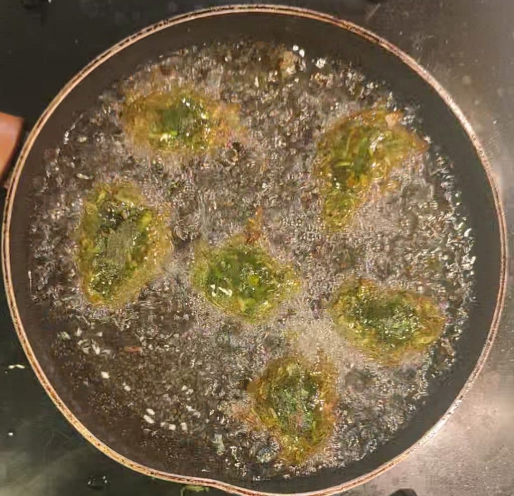 • Lastly, take a non-stick frying pan suitable for frying and fry the fritters in hot peanut oil.