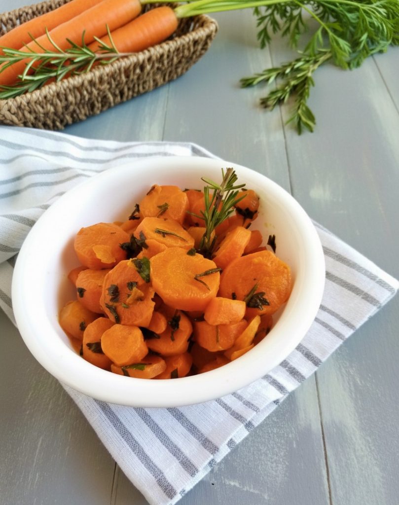 Butter and rosemary carrots are ideal as a side dish for roasted meats, braised dishes, stews, and baked chicken. They are also excellent with fried or buttered eggs for a simple and complete meal.