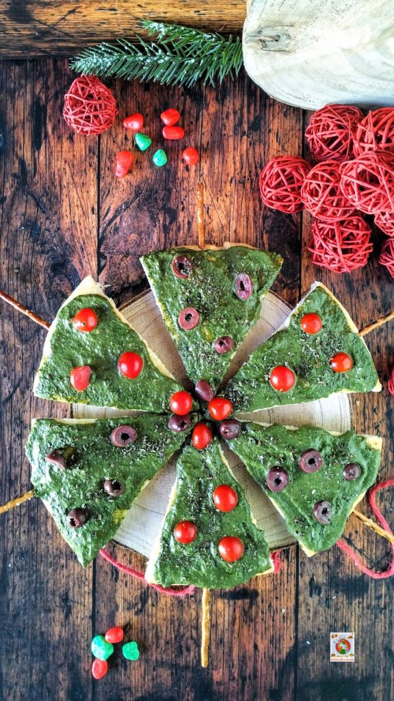 There’s nothing better than a well-set table, friends and family gathered, lights that softly illuminate, and, at the center of the scene, these charming focaccia trees decorated with green pesto, vibrant red cherry tomatoes, and intense black olives. They are a joy for both the eyes and the palate, little Christmas trees that you can enjoy, perfect to start a holiday lunch, either as an appetizer or as a starter.