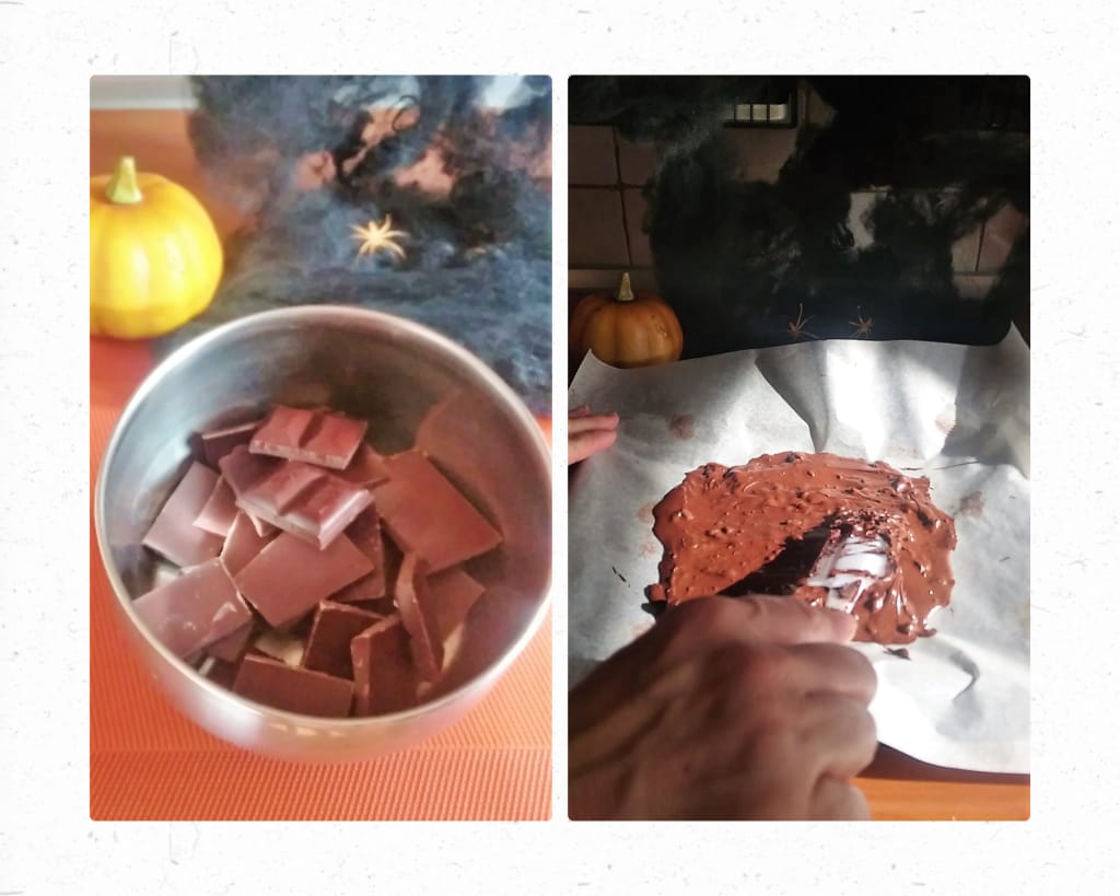 A very easy and quick recipe that you can vary in many different ways: for example, you can draw white chocolate ghosts on the melted chocolate or color white chocolate orange to draw little pumpkins.