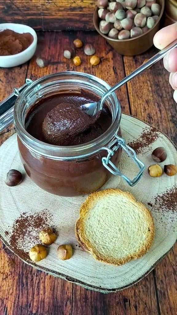 This recipe was born from the desire to enjoy a hazelnut and cocoa spread without guilt, perfect for spreading on bread, adding to yogurt, or enjoying by the spoonful during moments of indulgence. Thanks to the use of natural ingredients and the total absence of dairy or added oils, this spread is suitable for those seeking a lighter alternative, without sacrificing the enveloping taste of chocolate and hazelnuts.