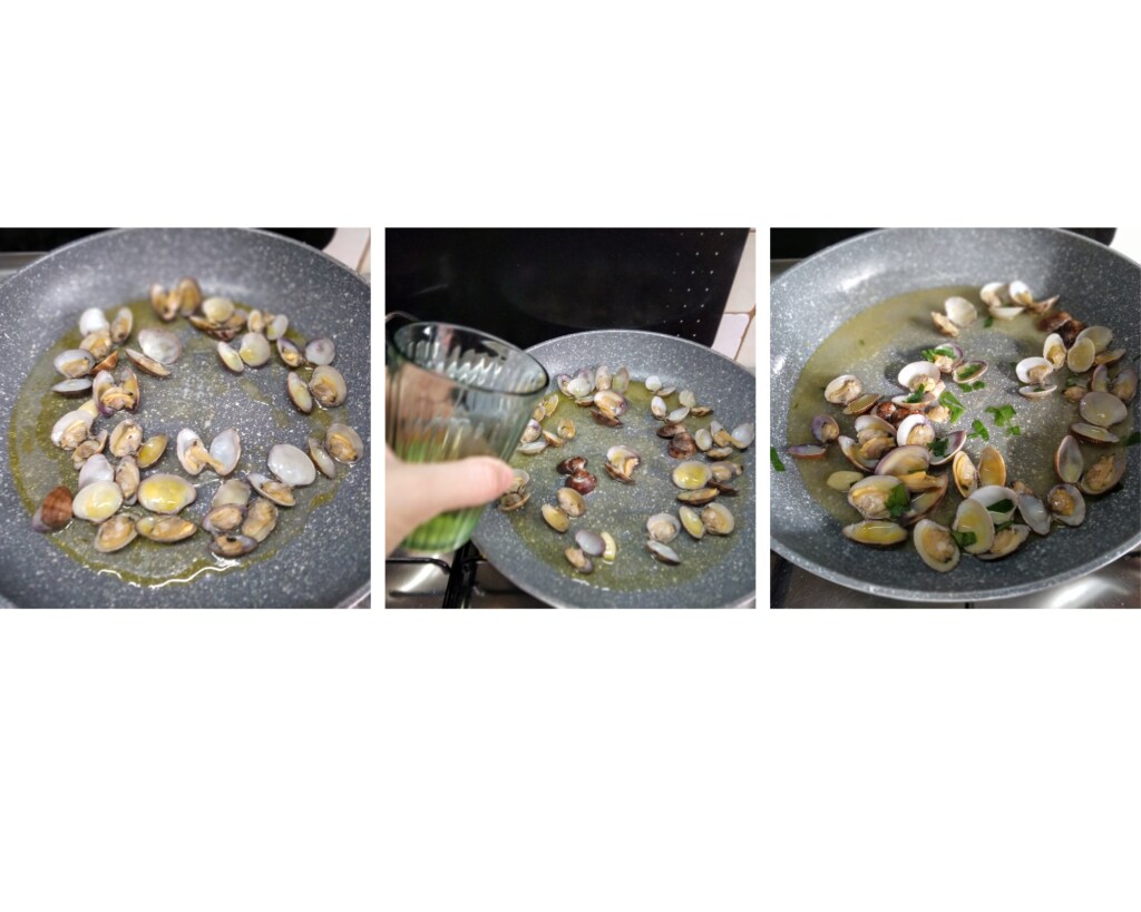 Place the clams in a pan, cover with a lid, and cook over high heat, until the clams have all opened.