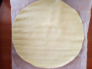 Roll out the shortcrust pastry discs and prick them with a fork.