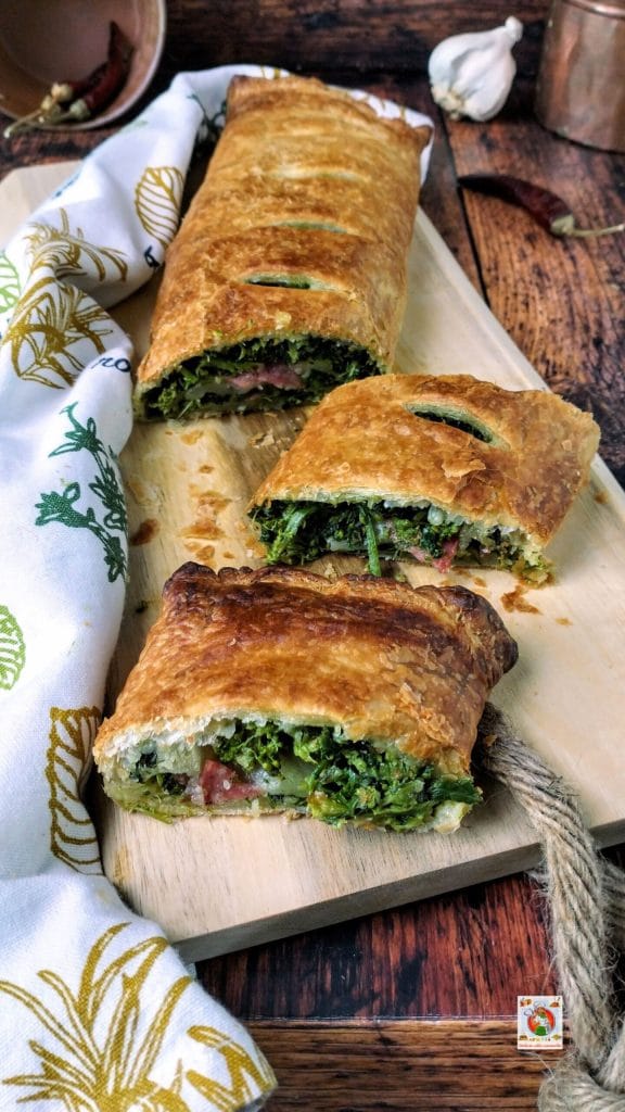 The strudel with broccoli rabe and sausage is a delightful dish that combines the simplicity of tradition with creativity in the kitchen.