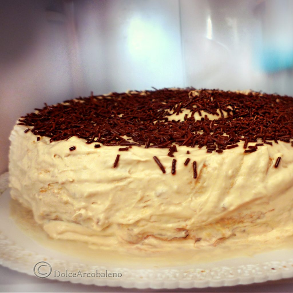 Regarding the banana cream cake, I want to tell you a story. The first time I made it was for a very special party: my eighteenth birthday, which I celebrated at home surrounded by my family and closest friends. There was a boy I liked, so I wanted to make a good impression and had prepared many small desserts and various types of cakes. However, this one was practically a curse because the table was too crowded. Every time someone reached over to grab something further back, they inevitably ended up getting dirty with the banana cream of the cake. Despite this, it was greatly appreciated, especially by the boy who was in love with me, whom I had not invited because a friend of mine had a crush on him, and who unexpectedly decided to surprise me… I’ll just add that it will bring you luck as it brought me! And for this reason, after many years since the birth of this blog, I decided not to change this somewhat unsightly photo because it’s real, taken of a cake ready to be eaten, not a cake made especially for the blog. I hope you will like it.