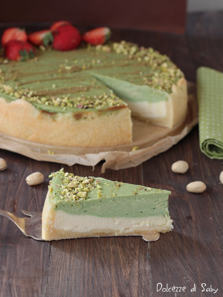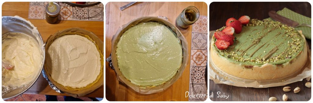 The choice to divide the cream into two parts and add pistachio spread to only one is intentional, to contrast the intense pistachio flavor with that of vanilla, because after all, it is still a cheesecake, so I wanted the cheese flavor to be noticeable. But if you prefer, you can use double the amount of pistachio spread and fill the entire cream with it.