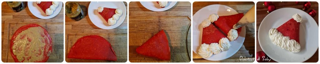 The filling for your Santa’s hat crepes can obviously vary as you like, hazelnut cream, custard, speculoos cream… all will be perfect for this recipe.