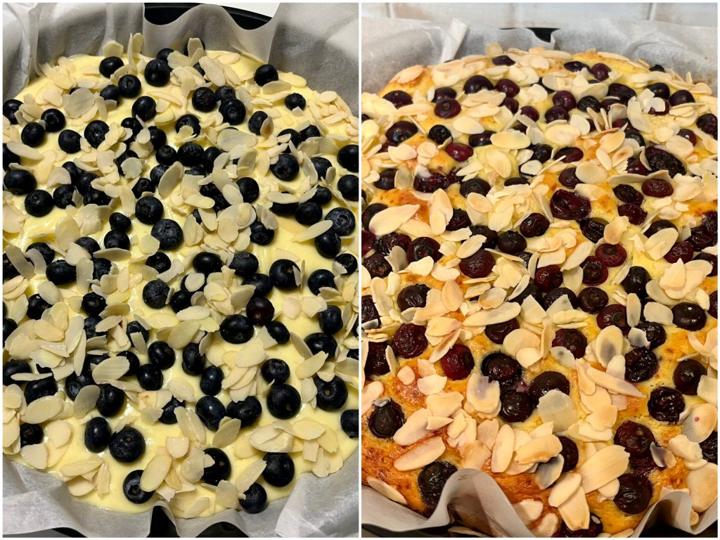 The ricotta gives the cake a soft texture, while the blueberries add a touch of freshness and tartness.