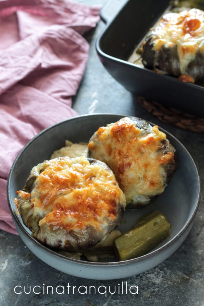 Remove from the oven and let them cool slightly before serving. You can accompany the stuffed artichokes with roasted potatoes cooked in the same tray, cut into small cubes and seasoned with a little oil, salt and rosemary.