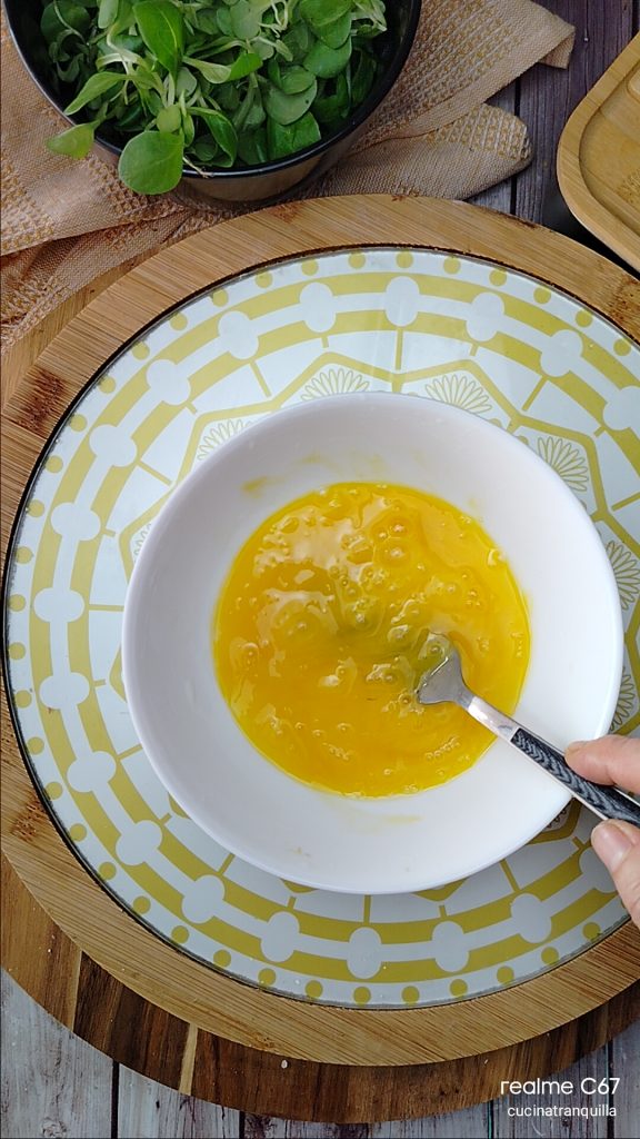 In a bowl, work the two eggs with a fork until you get a creamy consistency.