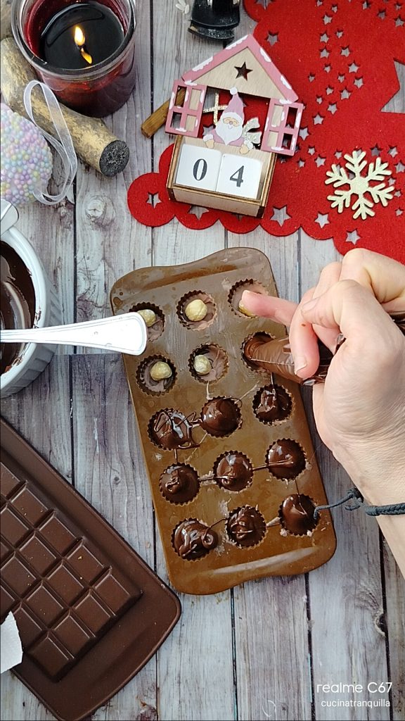 Christmas chocolates with Ruby chocolate and dark chocolate, with a core of toasted hazelnuts, three ingredients for an easy and delicious gift idea. They require very few steps to make, especially if you have a microwave, which is the tool I used, but you can also melt the chocolate in separate, well-cleaned pans, remember, using a double boiler. The final result will be the same, just slightly longer timing. Even melting chocolate in the microwave requires caution. In fact, in the photographic steps, I recommend melting the chocolate in several stages. This will prevent the chocolate from burning at this stage. Regarding the molds, if you are not very familiar or skilled with chocolate work, I suggest using silicone ones, which are easier to handle during the presentation phase of the chocolate. Below I leave some Christmas gift ideas, while after the recipe I answer the most common questions.