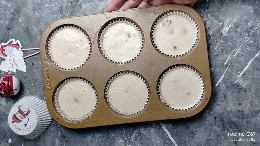 Pour into muffin liners placed inside the tin, filling them 3/4 full.