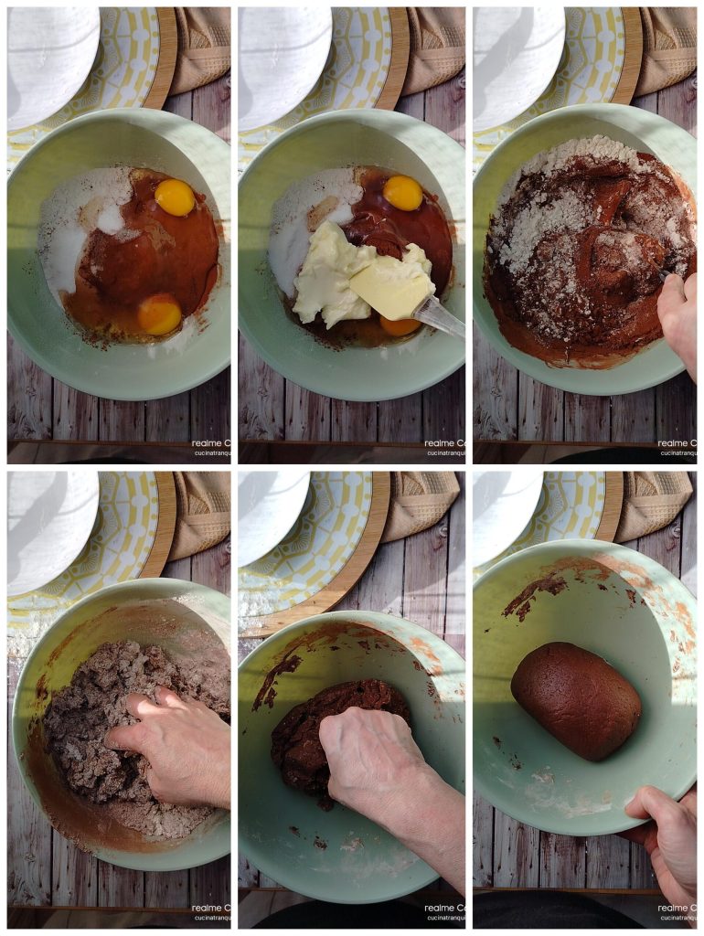 Then add the eggs and the butter which must be very soft and mix directly in the bowl first with a fork and then by hand until you get a homogeneous dough.