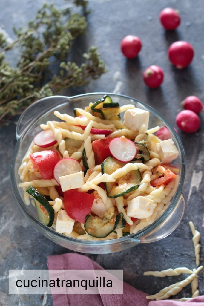 Cold pasta with feta and zucchini is an easy and quick first course to make, perfect to prepare with very few steps.
