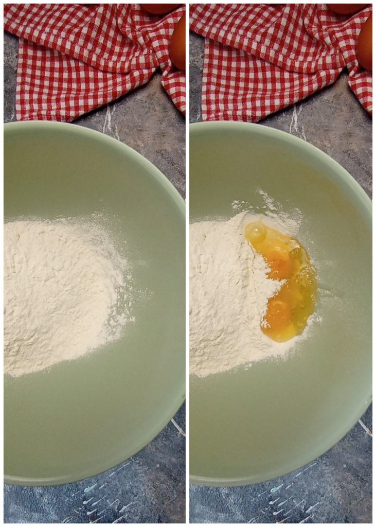 In a bowl, combine the flour with the eggs.