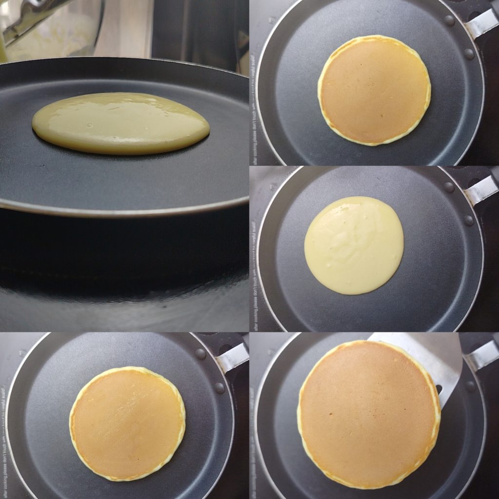 Continue until the ingredients are finished. Pancakes can be topped with hazelnut spread or jams, or with honey and fresh fruit, in addition to the classic maple syrup.