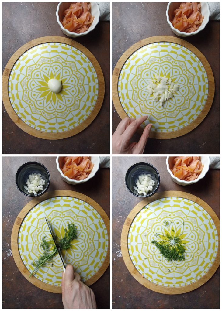 • Meanwhile, slice the salmon into strips after layering the fillets.