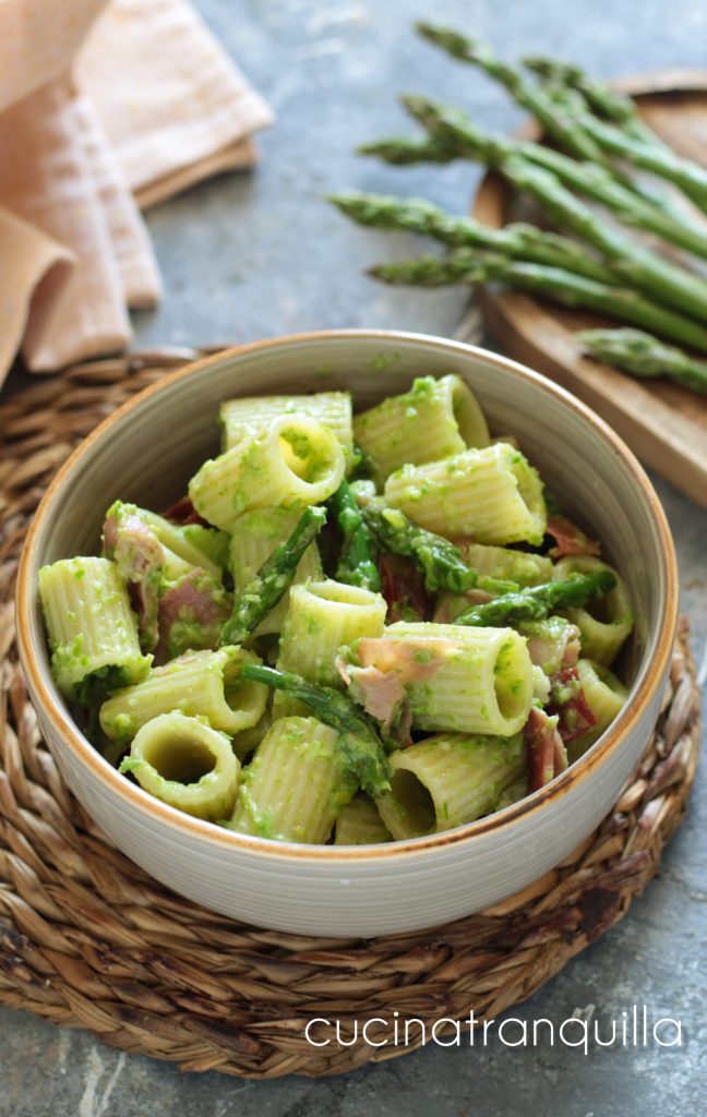 Half-sleeves in asparagus cream and speck, a succulent and incredibly creamy first course, which is very easy to prepare.