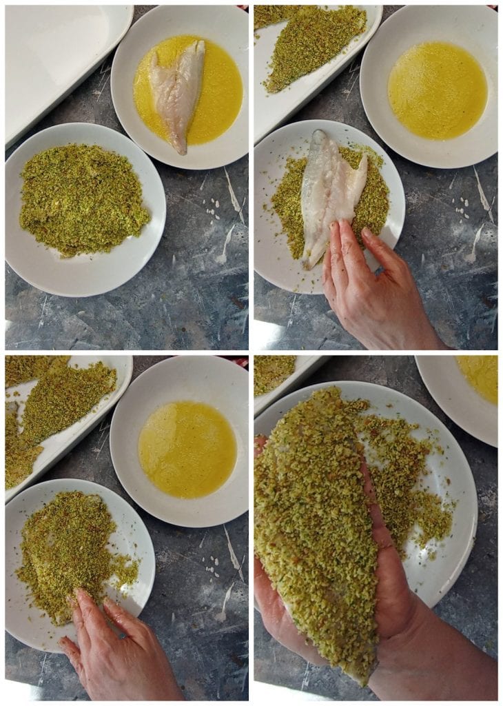 Dip the sea bream fillets one by one into the emulsion and then coat them with breadcrumbs.