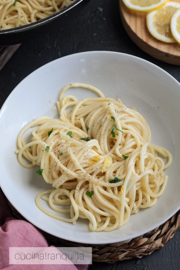 • In a wok, melt the butter, add the lemon zest and juice, and add the spaghetti.