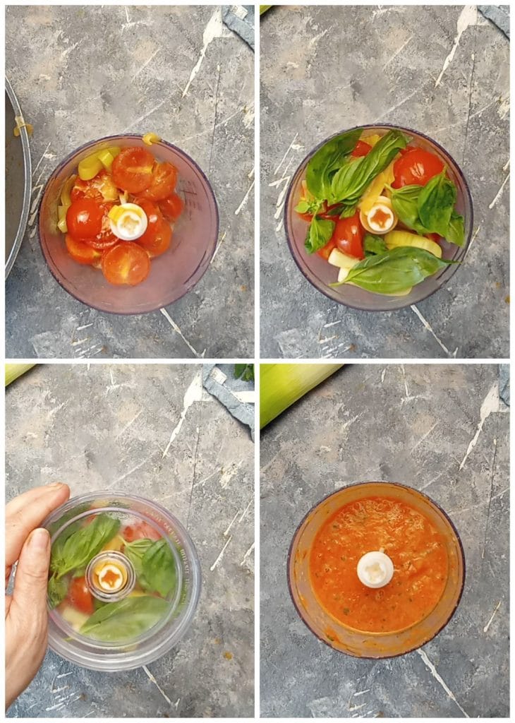 Blend the vegetables for a few moments and then mix the pasta in the final step.