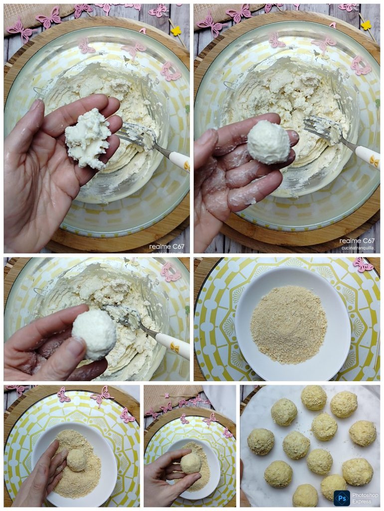 Take the mixture that has rested in the refrigerator and form small balls by quickly working them with your hands.