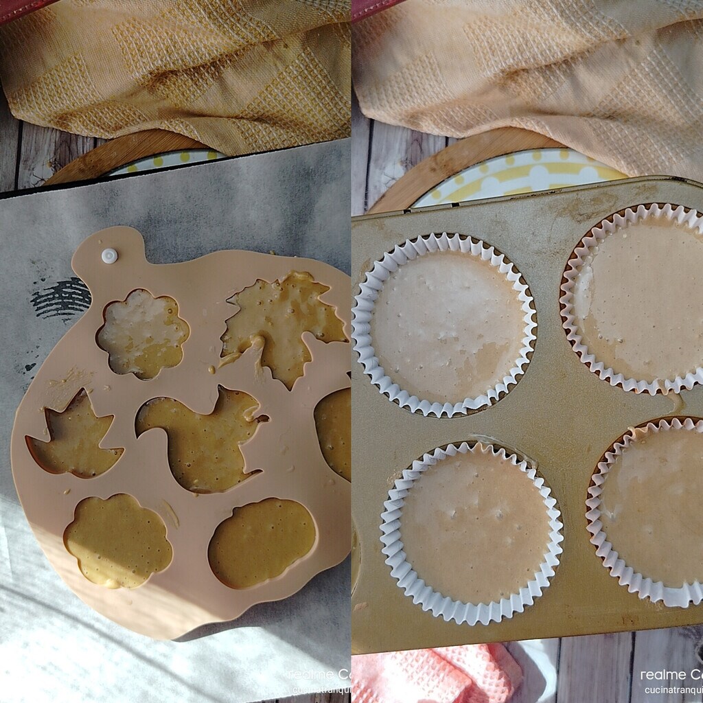 • You can use the mold I indicated among the tools, or the classic muffin tray, lined with baking cups. In both cases, the space should be filled up to three-quarters of the capacity.