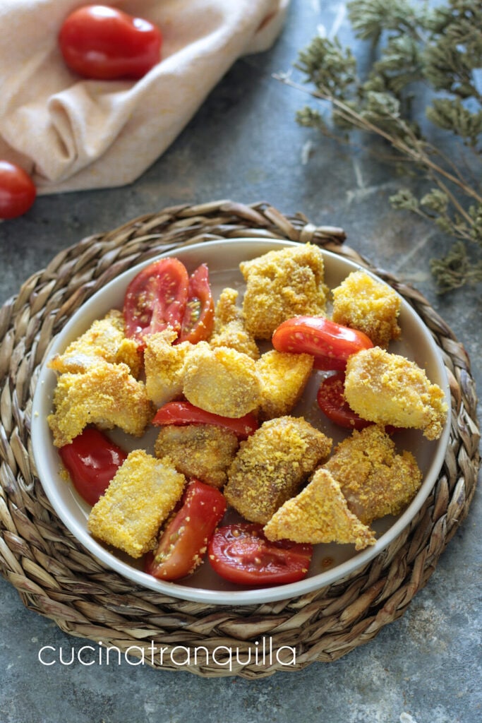 Serve the perch bites, still hot, with a delicious salad of cherry or grape tomatoes, or with a fresh leafy green version, such as iceberg lettuce or romaine lettuce previously washed and cleaned.