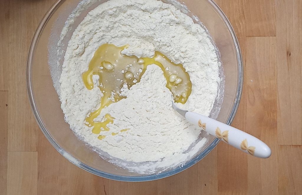 Work it, always keeping some flour nearby, because if the dough becomes too sticky, you can add a little more until you achieve the desired consistency.
