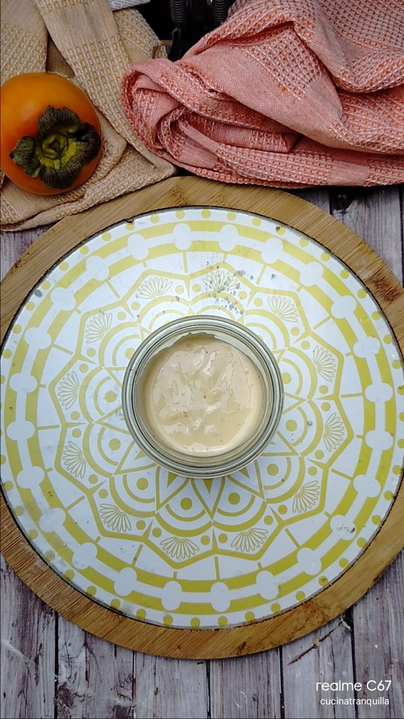 In this recipe, it is essential to use a rather soft and creamy ingredient. The persimmon apple, being harder, is not particularly suitable for use in this idea. Below, I show you its creaminess after settling.