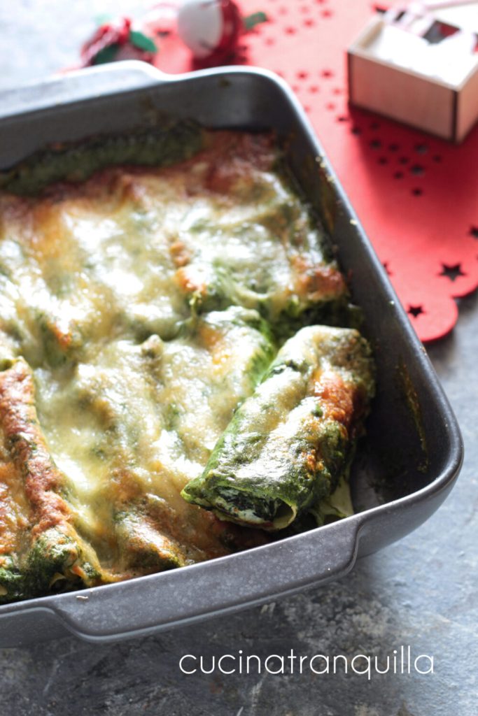 Let them cool a few minutes before serving. Ricotta and spinach cannelloni can also be prepared in advance and frozen, cooking them directly like this, or kept in the fridge uncooked for up to 24 hours.
