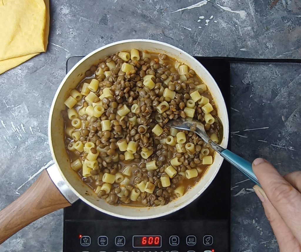 • Serve the hot pasta and lentils with the cotechino cubes.