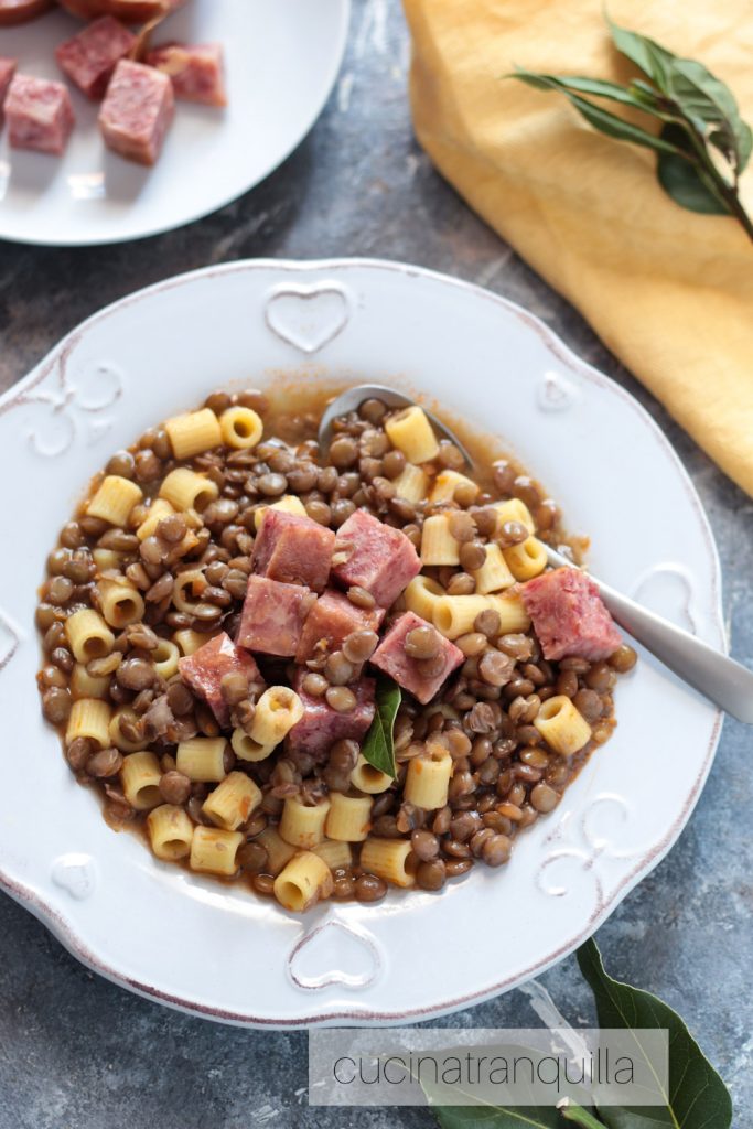 Ridged Tubetti with Cotechino and Lentils, a perfect main course for New Year’s Eve, great to make when you have leftover cotechino.