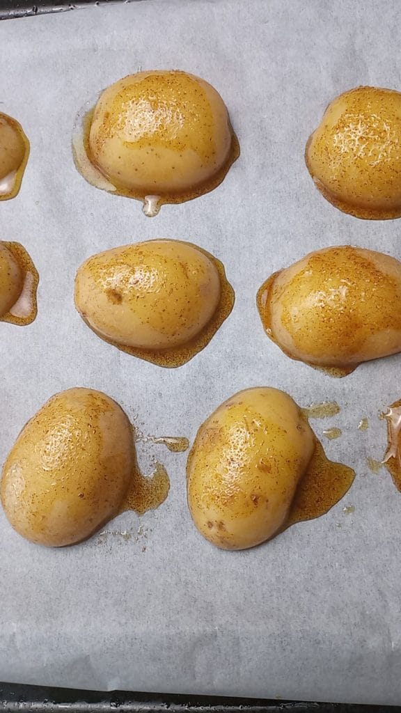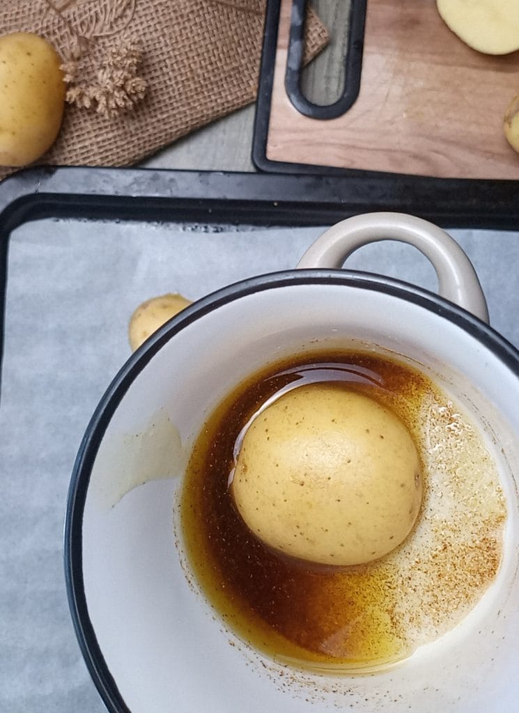 • With the remaining oil, I decided to season the skin to make the potatoes even tastier.