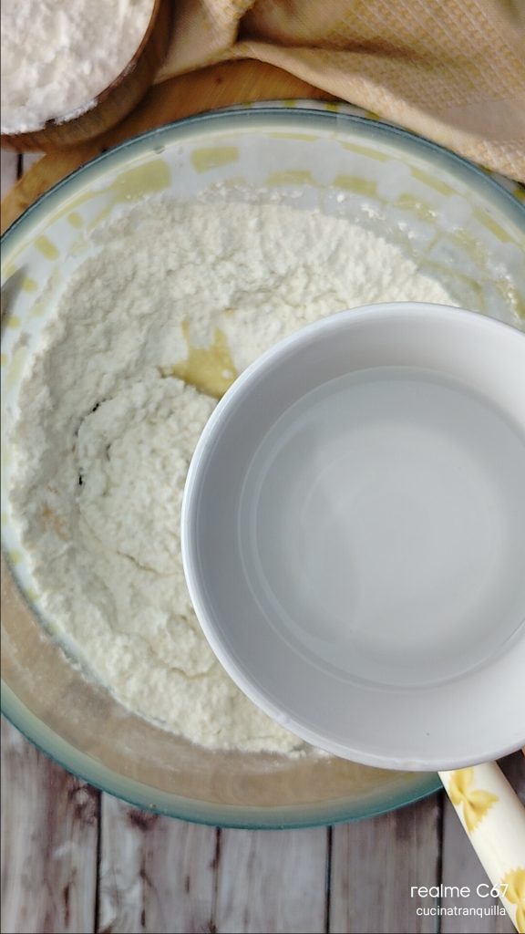 • Then pour in the water at room temperature and mix again to quickly incorporate these ingredients.