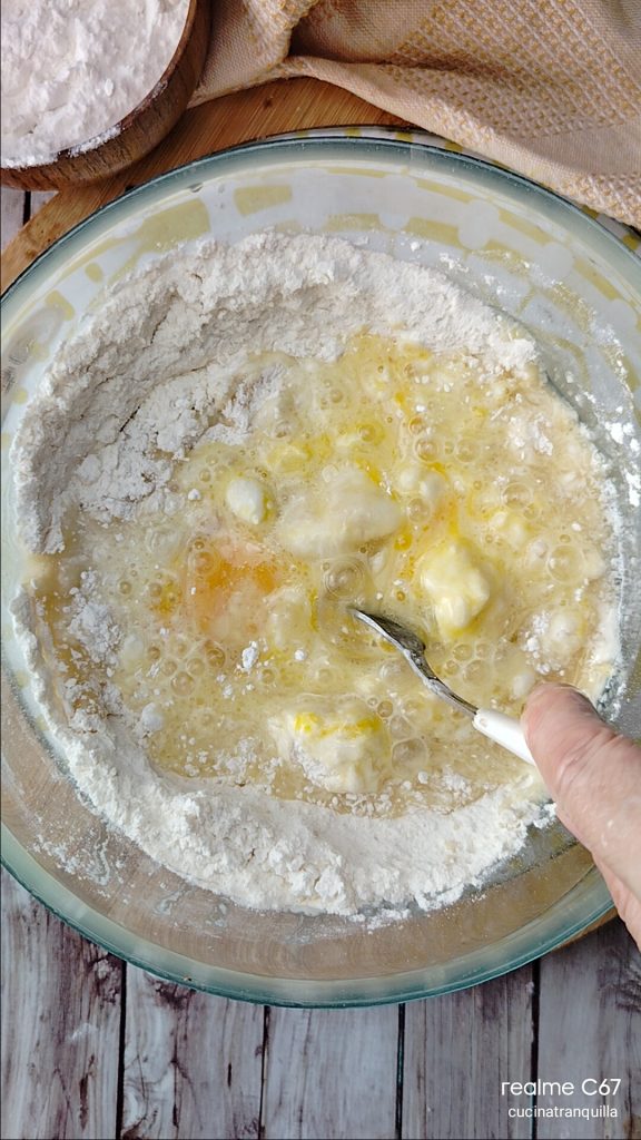 • Mix vigorously with a fork to make the dough more homogeneous.