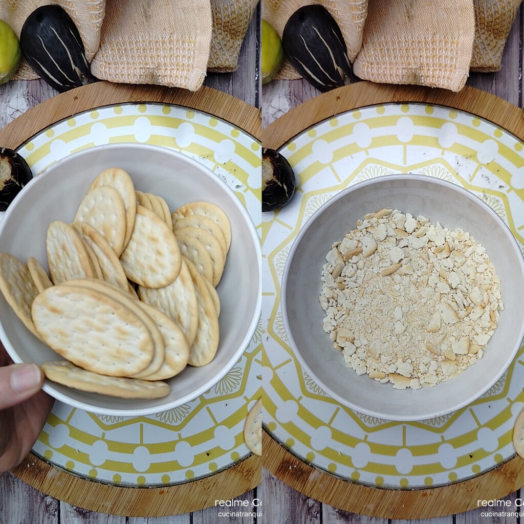 To make the Savory Cheesecake with Fresh Figs, No-Bake, first focus on the base. In a mixer, pour the chosen crackers and coarsely chop them. If you don’t have a mixer, you can put the crackers in a food bag, like freezer bags, close it, and crush them with a rolling pin.