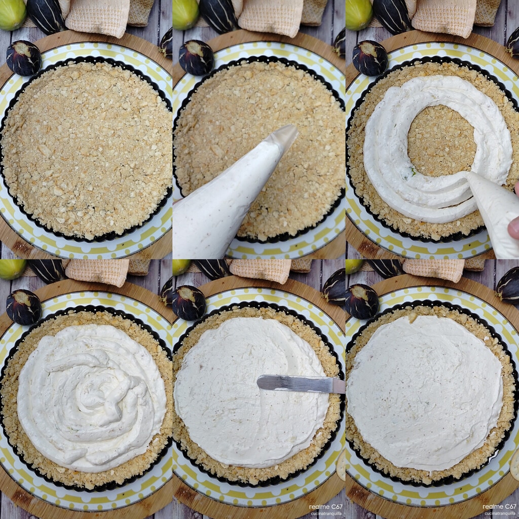Retrieve the base and, with the help of the piping bag, distribute the filling, leveling it with a spatula to the edges to make it smoother. Let rest again in the refrigerator for at least 1 hour or until ready to decorate.