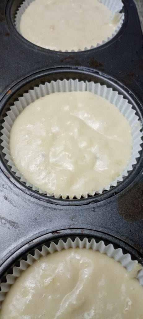 Once you achieve a smooth and homogeneous mixture, pour it into the cupcake liners, filling them two-thirds full.